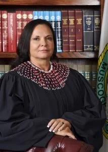 Justice Supernaw graduated with Honors from the University of Oklahoma College of Law. While attending University of Oklahoma, she was Editor-in-Chief of the AMERICAN INDIAN LAW REVIEW, on the Dean’s Honor Roll, and a Research Assistant for Dr. Rennard Strickland, Editor of Felix Cohen’s HANDBOOK OF FEDERAL INDIAN LAW. She also has a Master of Arts Degree in Rural and Indian Studies from Antioch University, and participated in the Program for Rural Leadership Development Network at the University of California at Davis. Justice Supernaw has spent her entire career in Indian affairs both working for and advising Indian tribes. She was nominated and confirmed to the Muscogee (Creek) Nation Supreme Court in May 2010 and is currently serving her second six-year term. Justice Supernaw served as Chief Justice for the 2012 calendar year.